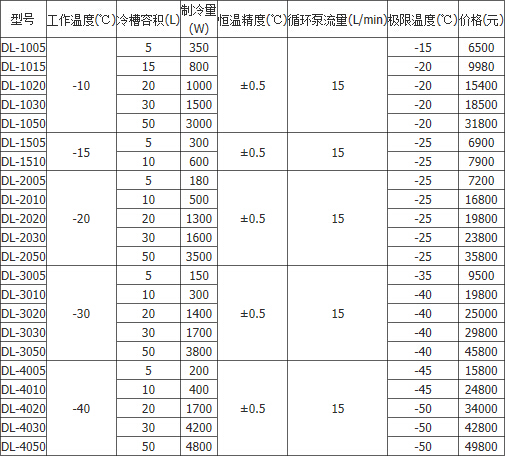 型號:DL-1005 | 溫度范圍:-10(℃) | 溫度波動度:±0.5(℃) |